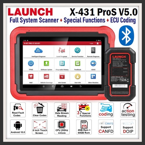 The Launch X-431 ProS V5.0 is a new generation of 8-inch automotive intelligent diagnostic tool with high configuration and super performance. The tablet is developed based on the Android 10.0 system, using a 2.0Ghz 4-core efficient processor, 4GB RAM + 64GB ROM large storage, and equipped with a high-end battery to make diagnosis faster, more stable and longer-lasting. Launch X-431 ProS V5.0 can cover more than 98% of cars on the market. It supports fault diagnosis for all models and systems, and supports code reading, code clearing, data stream reading, special functions, action testing, coding, matching, and powerful diagnostic functions.